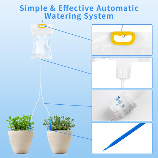 2Pcs 3.5 Liter Plant Drip Bag, Home Potting Waterer with 2 Hook Tip System Unit, Dual Outlet Adjustable Flow Rate Drip Bag, Patio, Lndoor, Outdoor Garden Automatic Drip Lrrigation Kit