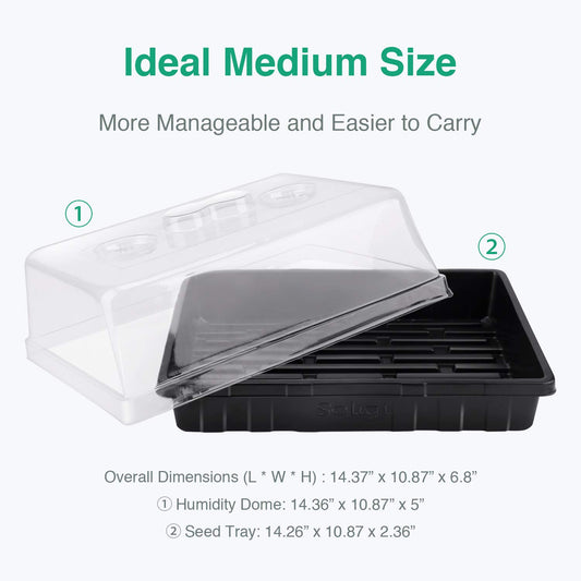 [Thick Plastic] 3-Set Strong Seed Starter Trays with 5" Humidity Domes for Seed Starting, Germination, Seedling Propagation & Plant Growing, Holds 144 Cells in Total