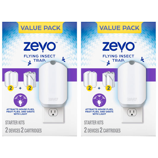 Zevo Flying Insect Trap for Indoors: Light Trap Captures Fruit Flies, Gnats and Houseflies, Starter Kit (1 Plug-in Base + 1 Cartridge)