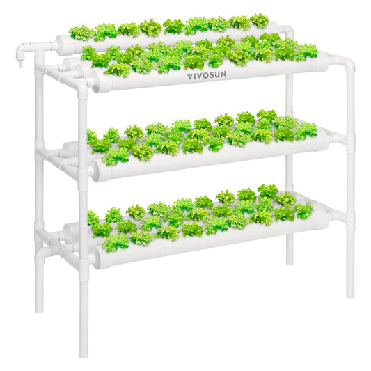 VIVOSUN Hydroponics Growing System 108 Plant Sites, 3 Layers 12 Food-Grade PVC-U Pipes Gardening System Grow Kit with Water Pump Timer, Nest Basket and Sponge for Leafy Vegetables