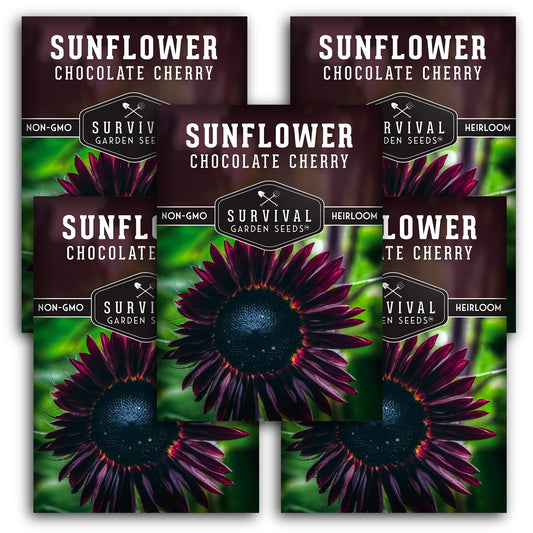 Survival Garden Seeds - Chocolate Cherry Sunflower Seed for Planting - Packet with Instructions to Plant & Grow Burgundy Sunflowers in Your Vegetable & Flower Garden - Non-GMO Heirloom Variety
